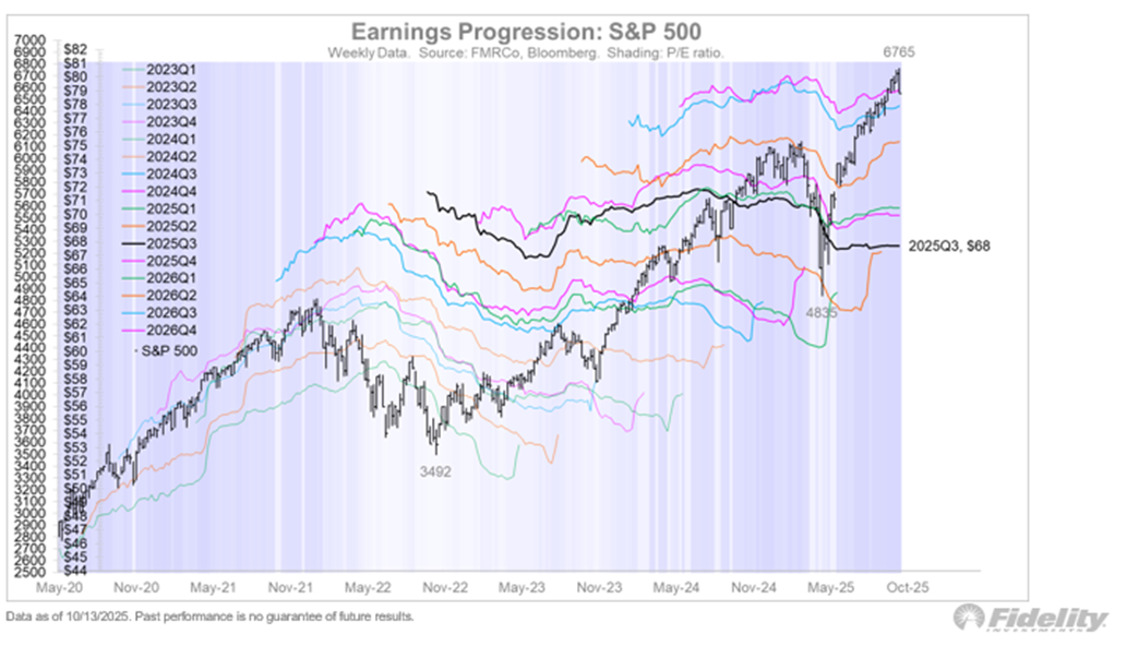 Žičlivé makroprostredie vytvára predpoklady na pokračovanie rastu firemných ziskov, ktoré by mali byť opäť ťahané najmä veľkými technologickými firmami. Odhady ziskovosti firiem indexu S&P 500 sa pritom zlepšujú (s tým, ako sa zlepšujú projekcie rastu HDP) na štvrtý kvartál tohto roka a aj ďalšie štvrťroky. Rast akciových trhov pritom z dlhodobého hľadiska kopíruje rast ziskovosti. Od začiatku tohto roka platilo, že valuácie veľkých technologických akcií, kde sa objavovali obavy z bubliny, klesali (zisky rástli rýchlejšie ako ceny akcií).