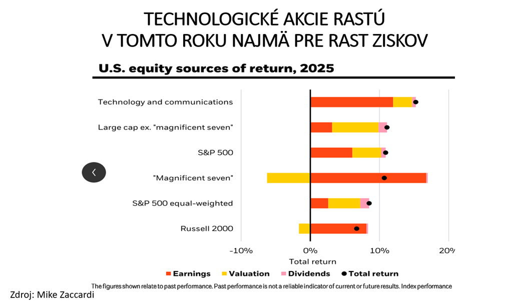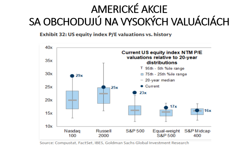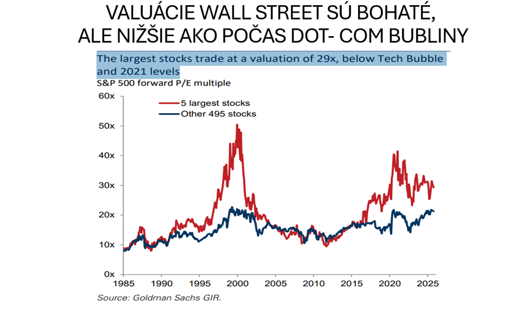 Sčítané a podčiarknuté, ak bude americká ekonomika pokračovať v solídnom raste bez veľkého inflačného šoku, kolapsu trhu práce (ktorý sa síce ochladzuje, ale stále je robustný) a bude pokračovať rozmach umelej inteligencie, aj budúci rok by mohol byť pre Wall Street priaznivý. Hoci nebudeme prekvapení, ak príde k určitej konsolidácii a k poklesu valuácií. Napriek konštruktívnemu pohľadu zastávame názor, že pomer rizika a výnosu amerických akcií nie je práve ideálny s úzkym líderstvom (koncentráciou) pár technologických titulov.