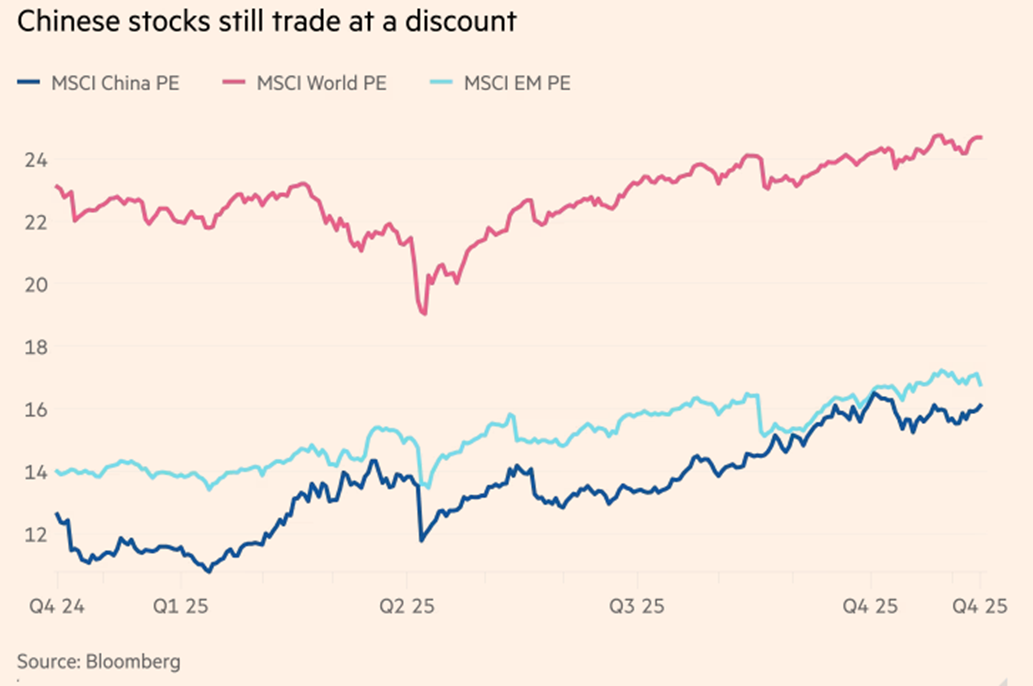 Súčasne rastie entuziazmus z čínskej umelej inteligencie po vydaní revolučného DeepSeek modelu, ako aj širšieho zamerania investorov na ázijský región so solídnym ekonomickým rastom pri ráznom oslabení dolára od začiatku roka. Čína sa obchoduje stále s mimoriadnym valuačným diskontom nielen voči USA, ale aj voči mnohým ďalším trhom, a pritom sa tu nachádzajú vyspelé technologické firmy, ktoré sú v princípe jediným skutočným konkurentom tých amerických.