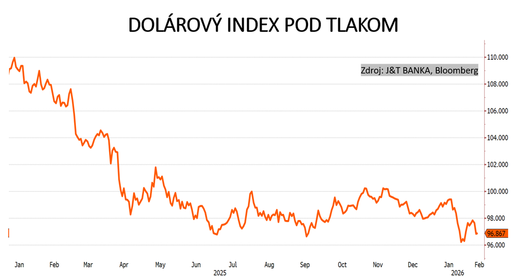 Okrem toho hlavným hnacím motorom slabosti zelenej bankovky je nedôvera voči kontroverznej predátorskej (nielen hospodárskej) politike Bieleho domu, kde sa incidenty ako Grónska otázka, kde osud ostrova stále nie je jasný (napriek Trumpovmu avizovanému dosiahnutiu rámca budúcej dohody), môžu pravidelne opakovať a konsolidácia verejných financií nebude zrejme ešte dlho na programe dňa pri zameraní sa na masívnu fiškálnu stimuláciu prostredníctvom tzv. veľkého krásneho zákona, ktorý bude znamenať pokračovanie politiky vysokých rozpočtových deficitov. Navyše sotva možno očakávať, že Trump skončí s kritikou Fedu aj po vypršaní mandátu súčasného predsedu Rady guvernérov Jeroma Powella.