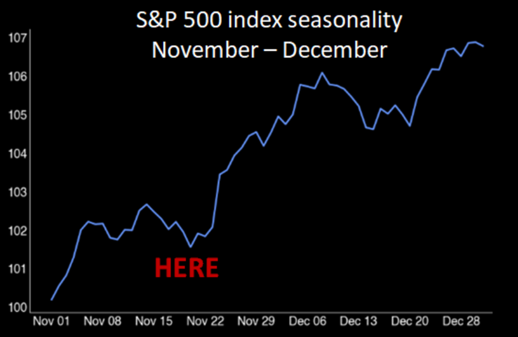 Decembrový „cut“ Fedu by mohol vytvoriť dobrý základ z hľadiska možnej sezónnosti (a nadvýkonu) pre americké akcie pred koncom roka s možným príchodom Santa Clauss Rally (štandardne posledných päť obchodných dní decembra a prvé dva obchodné dni januára). To by mohlo znamenať pokorenie méty 7 000 bodov indexu S&P 500 potenciálne ešte pred Silvestrom.
