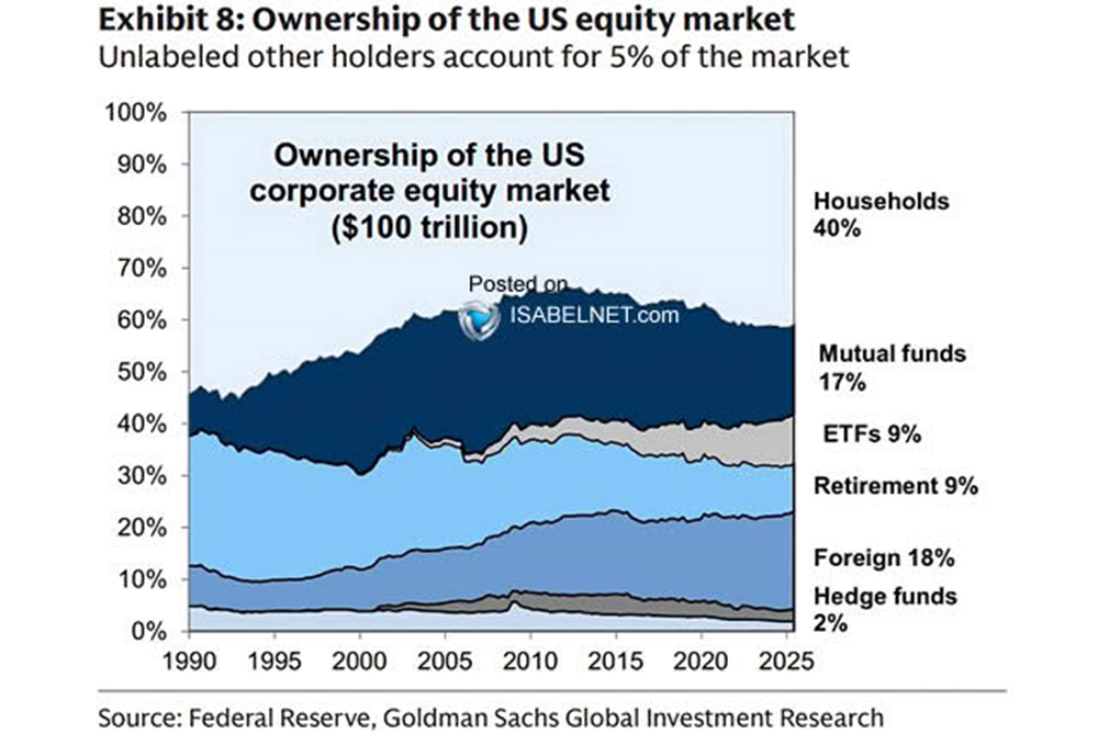 Americké domácnosti vlastnia 40 percent celého amerického akciového trhu v hodnote približne 100 biliónov USD. Tento podiel síce ukazuje silnú účasť retailových investorov, no treba dodať, že takmer 90 percent tohto majetku vlastní najbohatších 10 percent populácie. To znamená, že väčšina Američanov sa síce viac angažuje v investovaní, ale reálne bohatstvo zostáva koncentrované v rukách malej skupiny investorov.