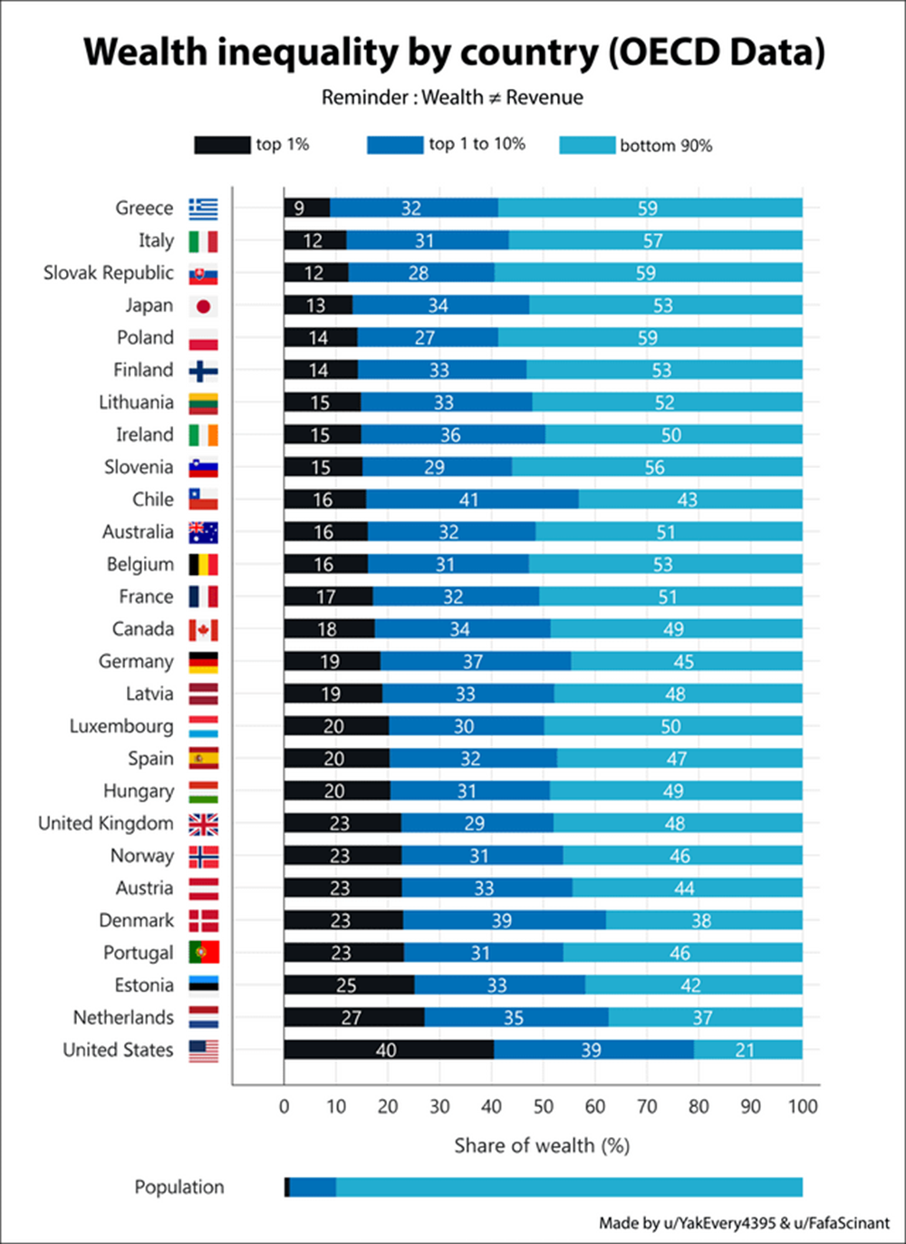 Graf 3: Spojené štáty sú podľa rozdelenia majetku najviac nerovná krajina v OECD