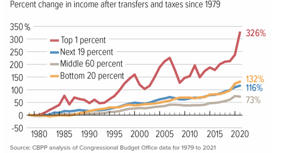 Graf 4: Spojené štáty ako celok bohatnú, no najbohatší ľudia najrýchlejšie
