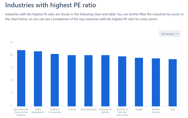 Graf 4: Odvetvia s najvyšším P/E násobkom