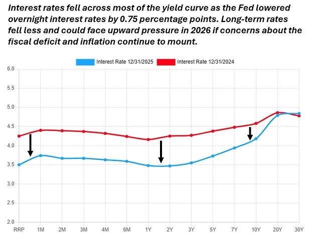 Graf 6: USA - výnosová krivka: 31. 12. 2025 verzus 31. 12. 2024